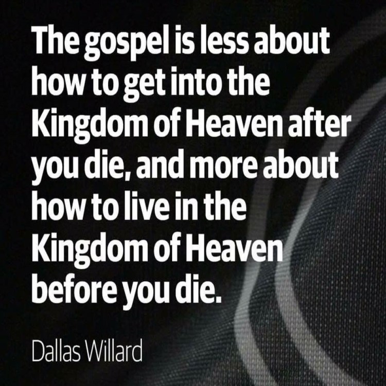 Live an eternal life right now. Or as Willard put it, learn how to live in the Kingdom of Heaven now.