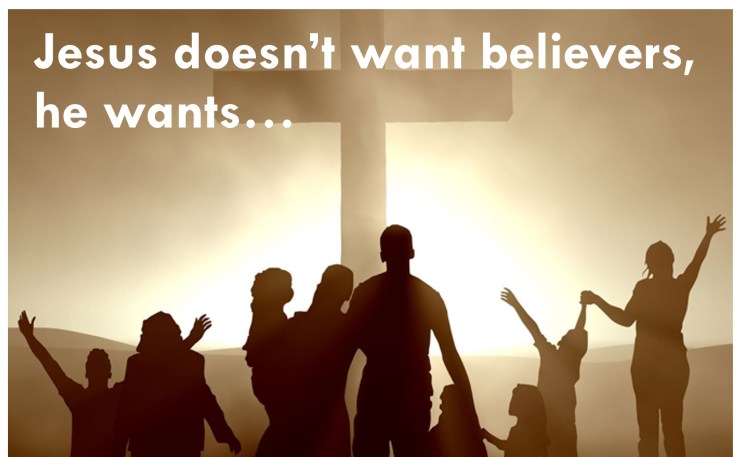 2 thoughts on “Jesus doesn’t want believers, he wants…”