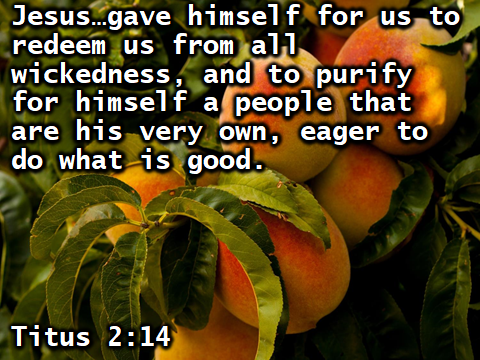 What we have in Titus 2:11-15 is the Gospel, the good news that God’s gracious gift of salvation, through Jesus’ life, death, and resurrection, is available to all. We will know that we receive that gift as evidenced by the change that takes place in our lives. We are redeemed, purified and eager to do good. Think about those three words. Redeemed, Purified, Eager to do good. How are you expressing the transformation God is doing in your life? How is his fruit growing in your life? There should be clear evidence of God’s goodness growing in you. How are you seeing that goodness impact the lives of other people around you, and impact your community?