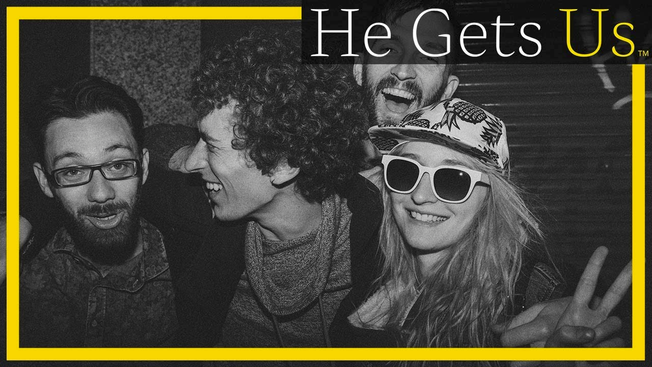 What kind of company might come up with the slogan “He Gets Us” to advertise their product?