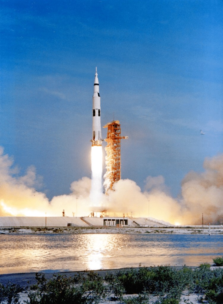 NASA, however, had been hard at work behind the scenes, testing, fixing, and launching unmanned Apollo rockets. In what is known as Moonshot, NASA made a gutsy push to beat the Soviets. On Oct 11, 1968, the first manned Apollo mission was successful. On December 24, 1968, NASA scored points in the space race, beaten the Soviets in sending the first manned Apollo mission to orbit the moon and return to earth successfully. Just as our American Moonshot was succeeding, the Soviet space program experienced struggles. In early July 1969 their unmanned moon rocket exploded just after launch.