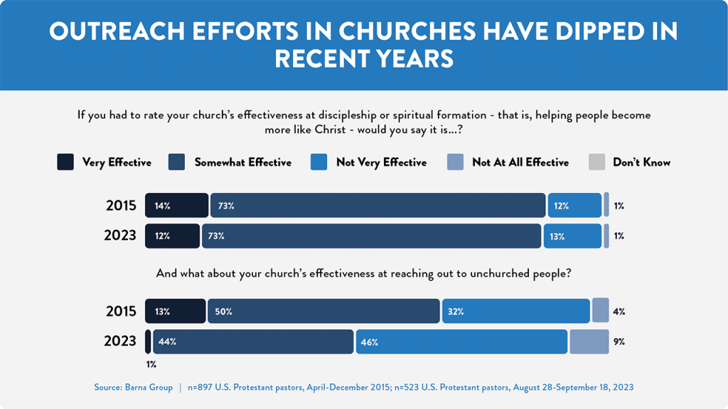 A recent article notes “Evangelism is on life support in most churches.” The article reports a poll in which only 1% of pastors surveyed say their church is very effective in sharing the Good News about Jesus.